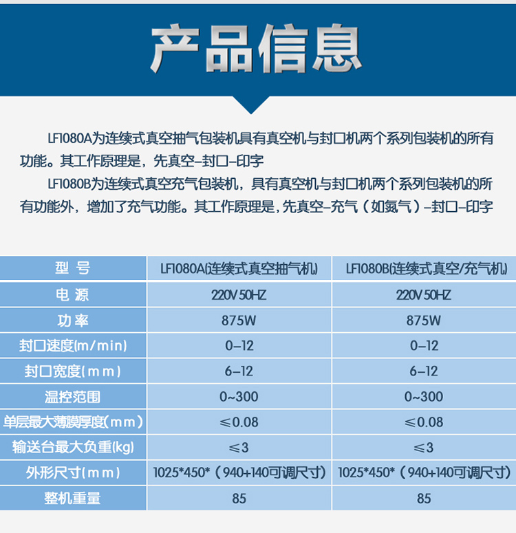 【LF1080連續(xù)式真空抽氣/充氣封口機(jī)】詳細(xì)信息